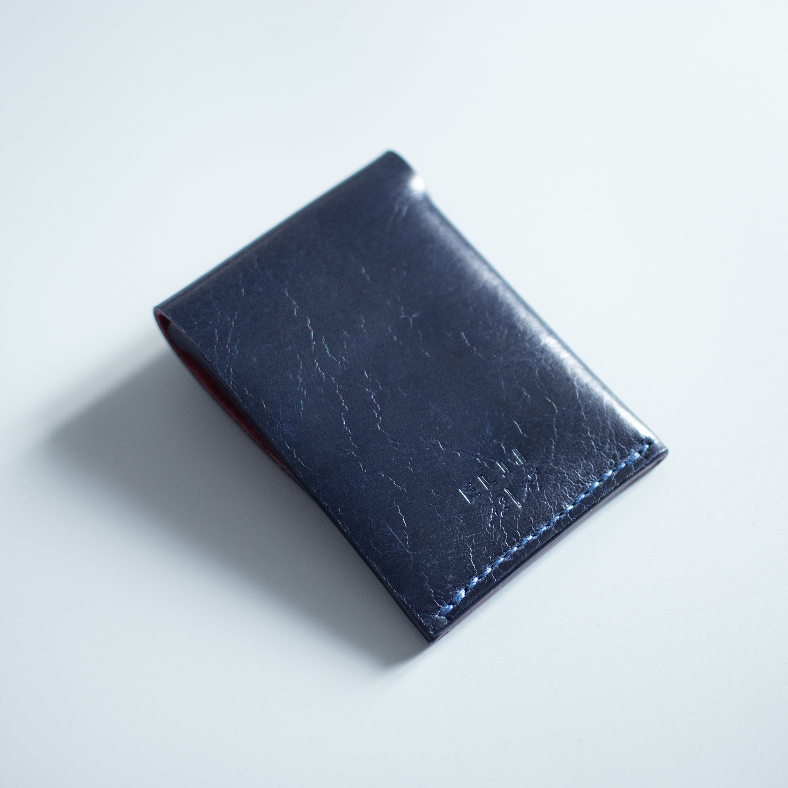 Avec son magnifique cuir de vachette pull-up bleu et une doublure cuir velours rose ou bleue, ce porte-cartes minimaliste sera votre partenaire du quotidien pour tous vos achats.